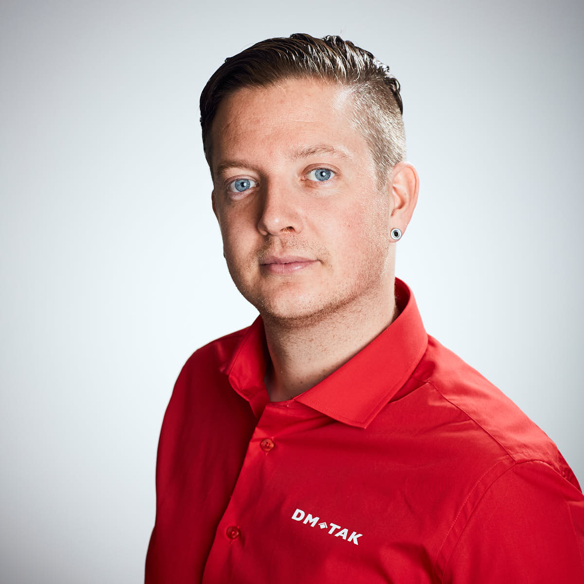 Porträttfotografering av DM TAKs personal för hemsidan, där det ska vara enkelt att se vem man kontaktar i olika ärenden. Stilen hölls ren för att smälta in i sidans vita uttryck.