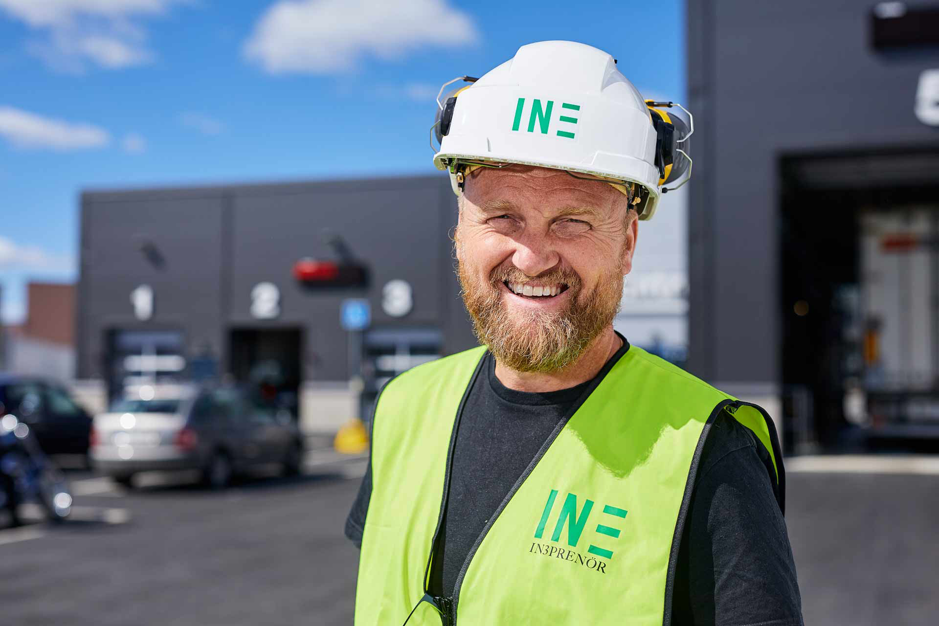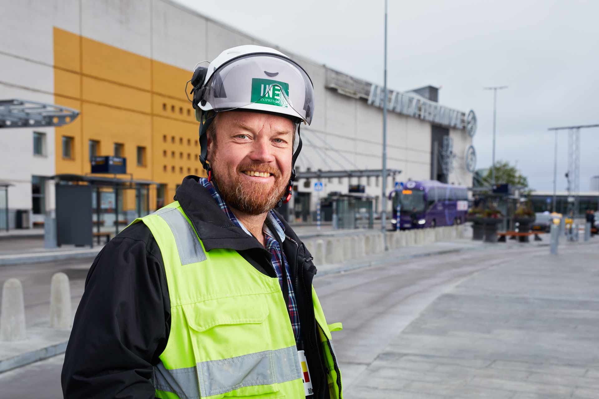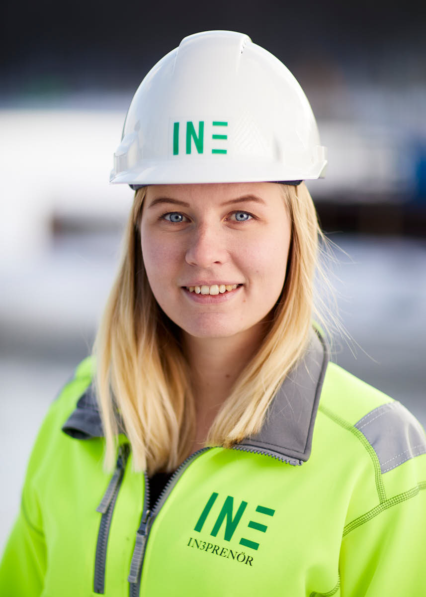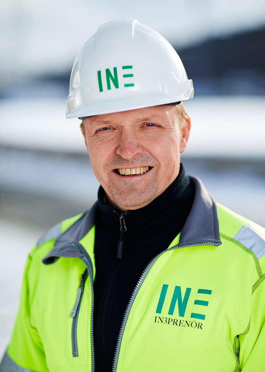 Porträttfotografering av In3prenörs personal ute på arbetsplatserna, där de möter kunder och leverantörer i vardagen. Bilderna används på hemsidan under kontakt.